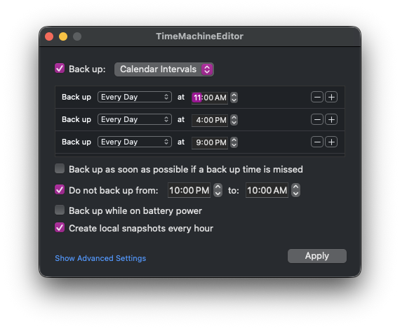 - Time Machine’s default scheduling options weren’t ideal for me.