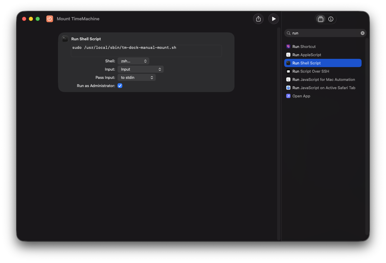 This step creates the Shortcut that you can simply run in macOS to manually mount the HDD without needing to unplug and replug anything physically, very useful if you ever want to mount it to just inspect the Time Machine backups or restore any files.